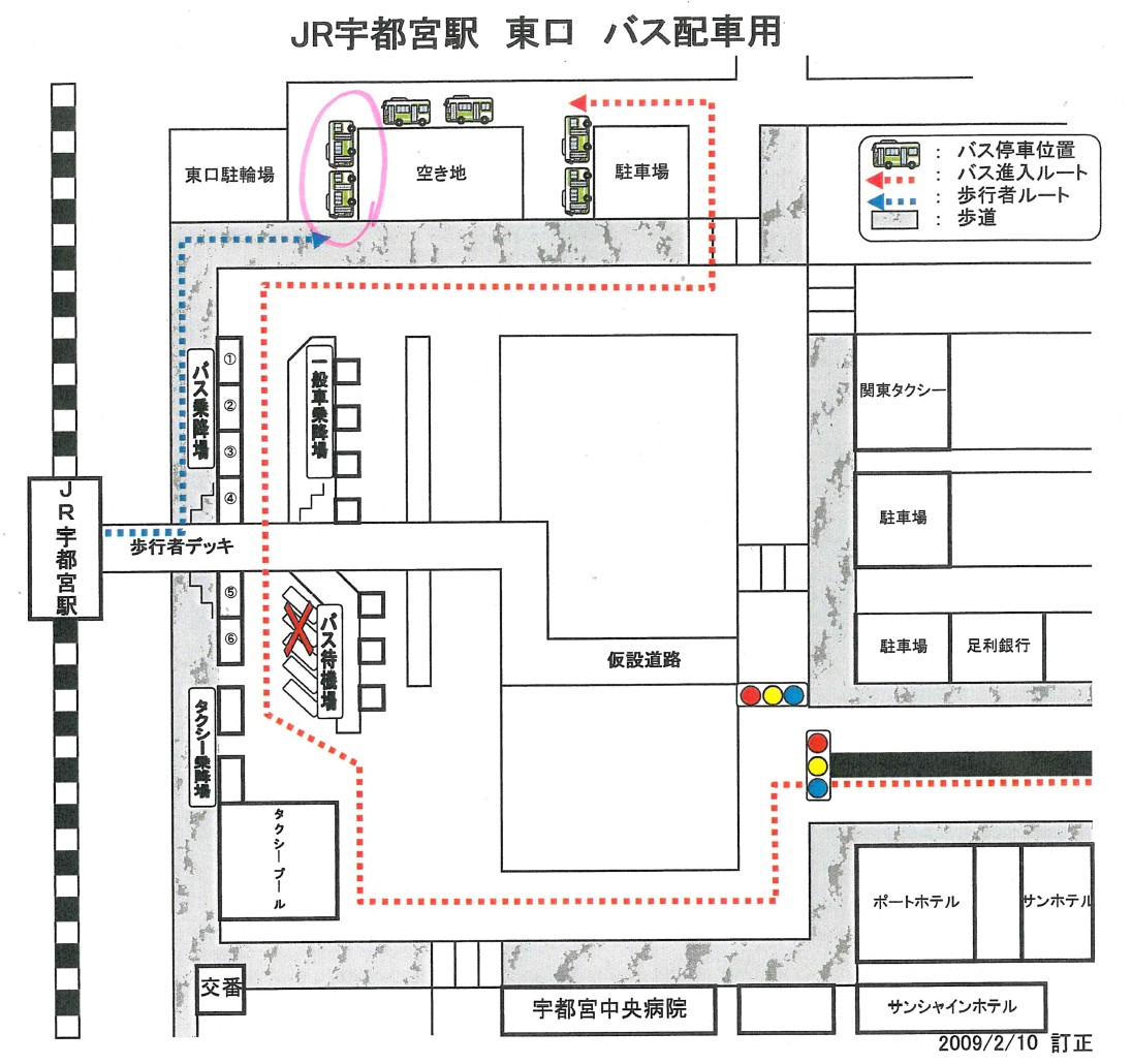 宇都宮駅東口北側駐輪場付近集合・解散(下図:宇都宮駅東口バス乗降場所のご案内)
